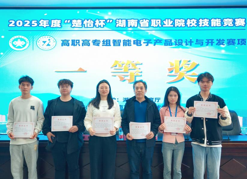 2025湖南省“楚怡杯”职业院校技能竞赛落下帷幕。在校、院两级领导的得力领导和指导老师的细心、耐心指导下,电信学院学子奋勇争先,13支队伍参加9个赛项的角逐,在智能电子产品设计与开发、短视频创作与运营等赛项中表现优异,共获得一等奖2项,二等奖4项,三等奖6项,创下学院在该赛事中的历史最佳成绩!