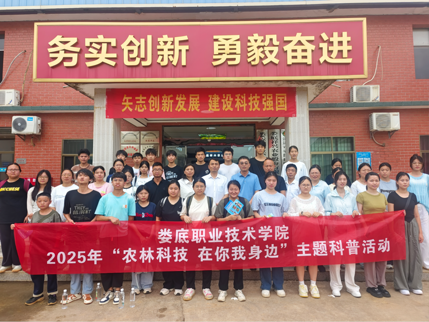 为深入贯彻落实娄底市科技局等4部门联合下发的《关于举办2025年娄底市科技活动周和科技工作者日活动的通知》要求,5月22日,在学校科技处的领导下,我校农林工程学院园林园艺专业师生联合涟源市科工局、娄底祥兴农业有限公司,在娄底祥兴农业有限公司开展了“农林科技,在你我身边”主题科普活动。我校科技处副处长李海莉,农林工程学院副院长谢大识,科技处及园林园艺专业教研室教师带队,23级园艺1班38名学生全程参与。同时,涟源市科工局相关人员、娄底祥兴农业有限公司员工和附近村民也齐聚现场,共同开启这场科普活动。