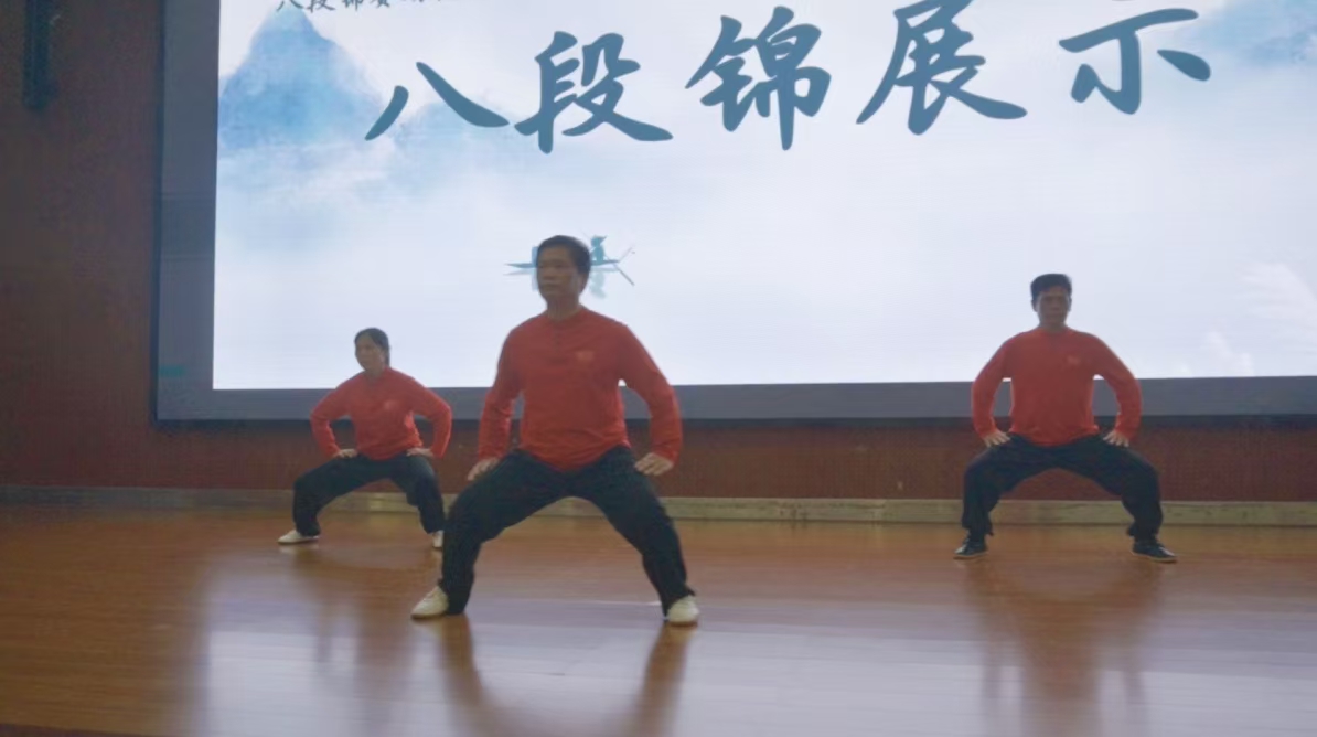 在正式比赛开始之前,锦心八段队为大家带来了一场精彩的表演展示,表演者以行云流水般的动作,带大家领略了八段锦的独特韵味。