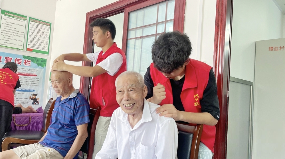 “三下乡”结束后,留在我脑海的是村民们一张张的笑脸。最让我心头发烫的,是窥见他们日子里藏不住的甜。起初见不少人说肩颈发僵,我自顾自猜是农活累的,他们却都笑着摆手:“哪是干活哟,最近麻将桌上坐久了,肩膀才不得劲!”说完哄堂大笑,那笑声撞在活动室的墙上,又弹回来落在我们心上,比盛夏的阳光还暖。原来“不舒服”的背后,是闲下来的惬意,是日子安稳后的小消遣。