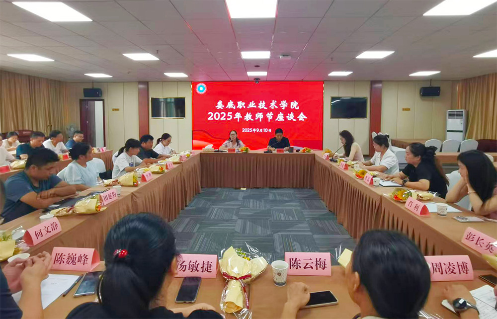 9月10日,在第41个教师节来临之际,我校召开教师节座谈会。校党委委员、副校长游新娥、申晓伟出席会议,相关职能部门负责人参加,与来自各二级学院及教学单位的15名教师代表共聚一堂,共话教育事业,共商学校发展。