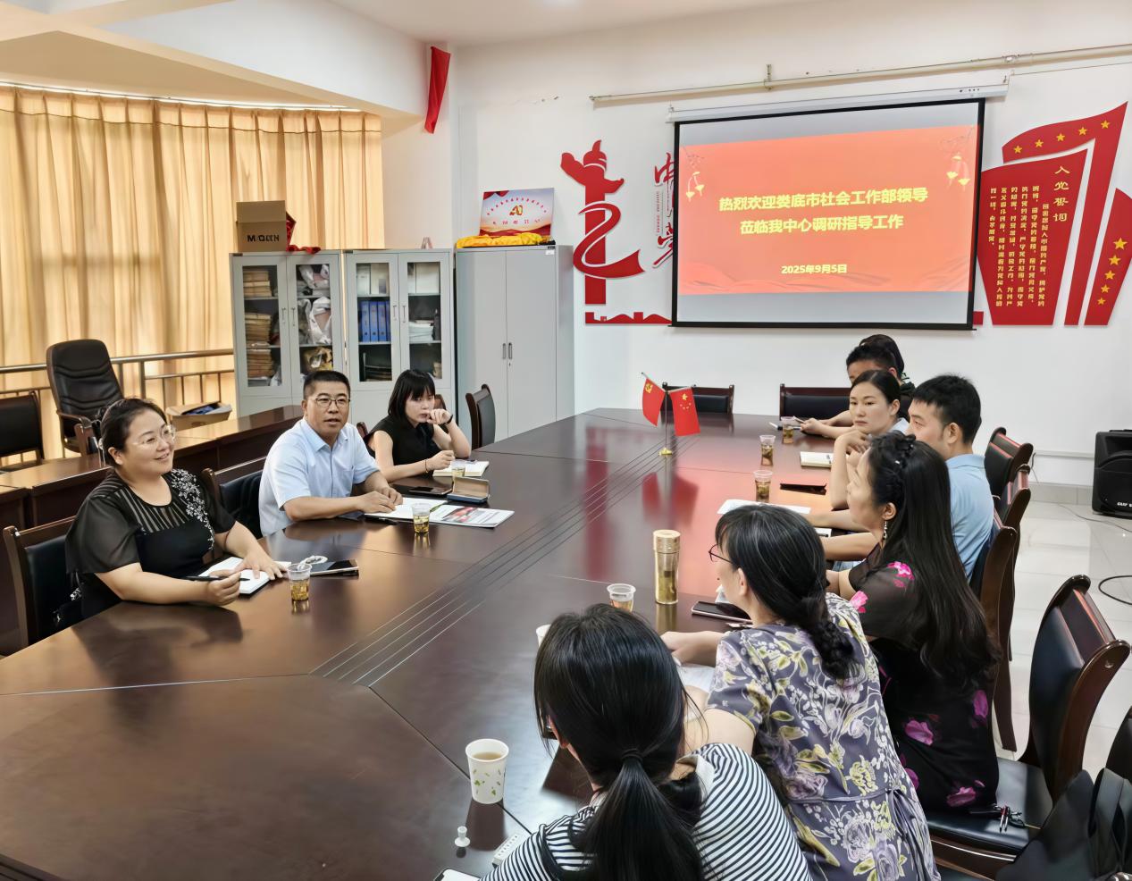 9月5日,中共娄底市委社会工作部副部长夏自卫一行莅临我校,对娄底市慈爱社会工作服务中心进行调研指导。 慈爱社工服务中心党支部书记、我校学工处处长李规,慈爱社工服务中心党支部全体成员、理事会成员及工作人员共同参与座谈。