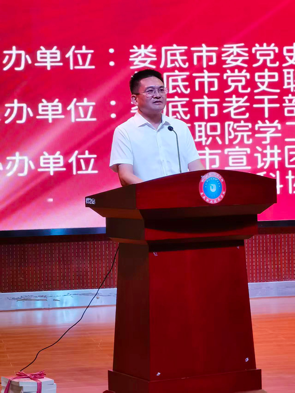 活动在庄严而热烈的氛围中拉开帷幕。市老干部党史宣讲团团长张经发宣布活动正式开始。娄底职院党委书记张征澜代表学校致欢迎辞,对宣讲团的到来表示诚挚感谢。市委党史研究室四级调研员刘作杰出席并发言,强调党史学习教育在新时代的育人作用,鼓励青年从红色基因中汲取前进力量。
