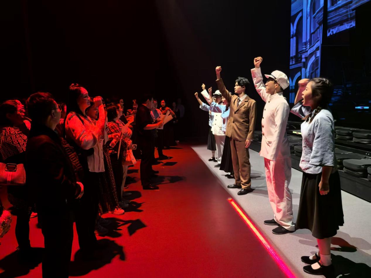 10月16日,为纪念中国人民抗日战争暨世界反法西斯战争胜利80周年,深入贯彻落实习近平总书记关于上好“大思政课”的重要指示,同时丰富“一月一课一片一实践”主题党日活动形式,我校组织全体党支部书记、离退休老同志及部分学生党员,赴娄底市广播电视台演播厅(红色剧场),观看以革命信仰为核心、融合沉浸式体验的红色史诗戏剧《信仰·1921》。