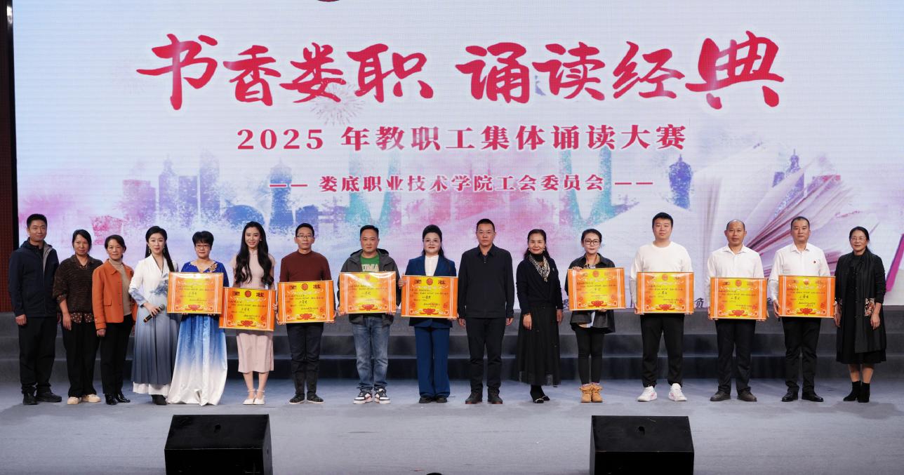 根深者叶茂,源浚者流长。为隆重庆祝中华全国总工会成立100周年,进一步激励和动员全校广大教职员工更加紧密团结在以习近平同志为核心的党中央周围,进一步加强教职工队伍思想政治建设,弘扬中华传统文化,引领广大教职工坚定不移听党话,矢志不渝跟党走,2025年10月23日,我校在新培训楼学术报告厅举办“书香娄职•诵读经典”教职工集体诵读大赛。