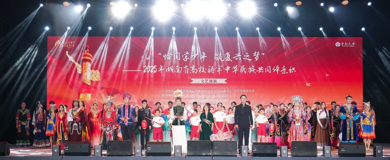 11月5日,“恰同学少年 筑复兴之梦”——2025年湖南省高校铸牢中华民族共同体意识现场展示体验暨文艺展演在中南大学举行。省委常委、省委统战部部长隋忠诚,省政协副主席虢正贵,中南大学党委书记易红出席活动 。我校作为省内19所高校之一,应邀参加现场展示,并观礼文艺汇演。