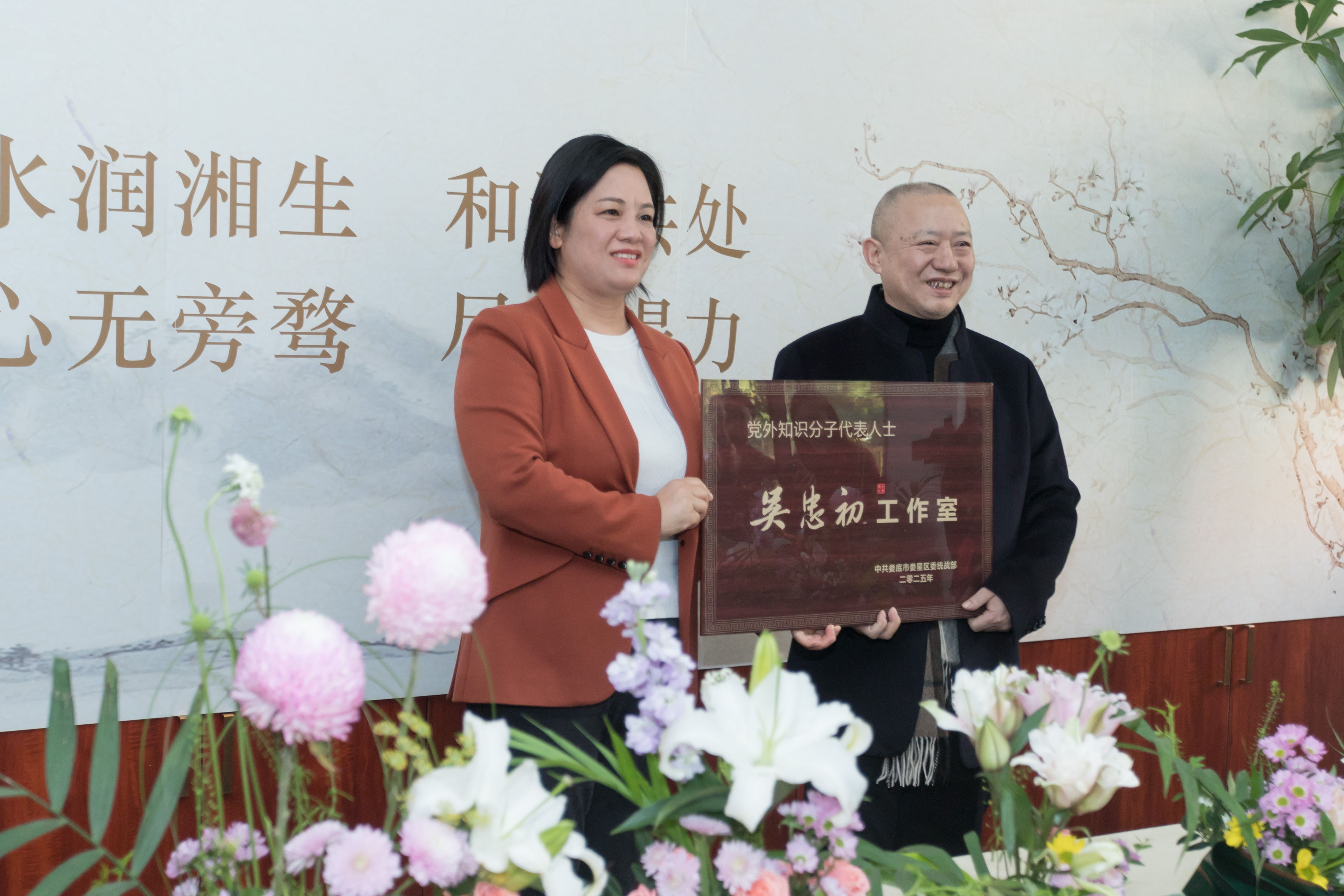 △娄星区委常委、统战部部长高英为湘忠堂中医馆授予“党外知识分子代表人士吴忠初工作室”牌匾