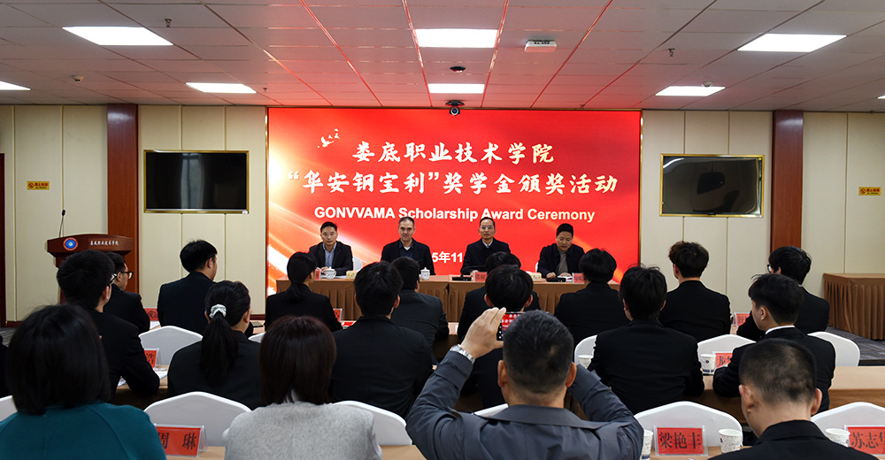 11月20日上午,我校举行“华安钢宝利”奖学金颁奖仪式。华安钢宝利集团COO大卫·苏亚雷斯、GONVVAMA公司厂长易正再、人力资源负责人匡莲花受邀出席活动,我校党委书记张征澜、副校长申晓伟出席活动,相关部门负责人及15名获奖学生参加。