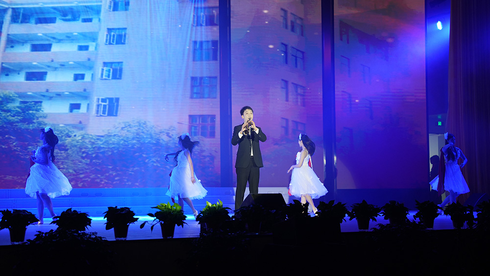 党委书记张征澜在讲话中,以诙谐亲切的互动方式向全体师生、校友及各界友人送上诚挚的节日祝福。致辞尾声,他即兴献唱经典曲目,瞬间点燃全场热情,师生们的热烈喝彩、阵阵掌声与欢呼声交织回荡,将晚会气氛推向首个高潮。