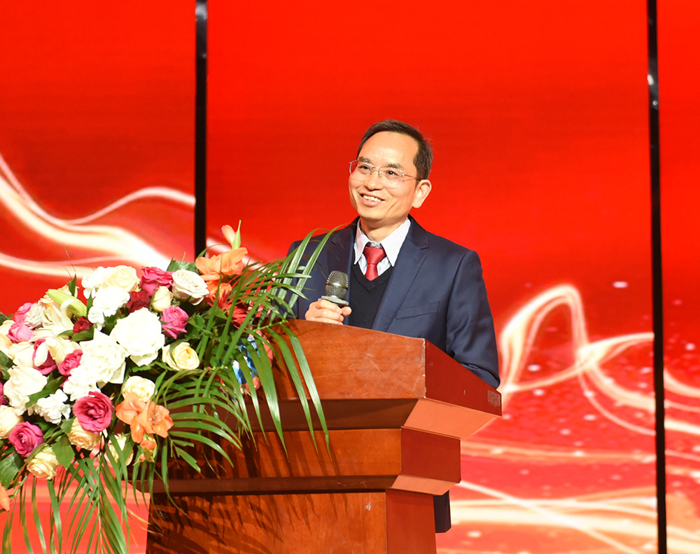 校长谭峰亮在致辞中表示,作为娄职大家庭的新成员,深感责任重大、使命光荣。他全面回顾了2025年学校在建设发展中取得的各项突破性成绩,向辛勤付出的全体师生员工致以衷心感谢。同时,他向全体娄职人发出号召:要始终保持“眼中有远方、脚下有力量、手中有绝活、心中有担当”的奋进姿态,牢牢锚定创建职业本科学校的核心目标,持续深化教育教学改革,以实干笃行书写学校高质量发展的崭新篇章!