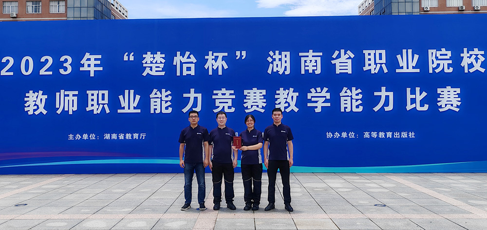 2023年带队参加湖南省职业院校教师职业能力竞赛教学能力比赛获得一等奖(右一为聂进)