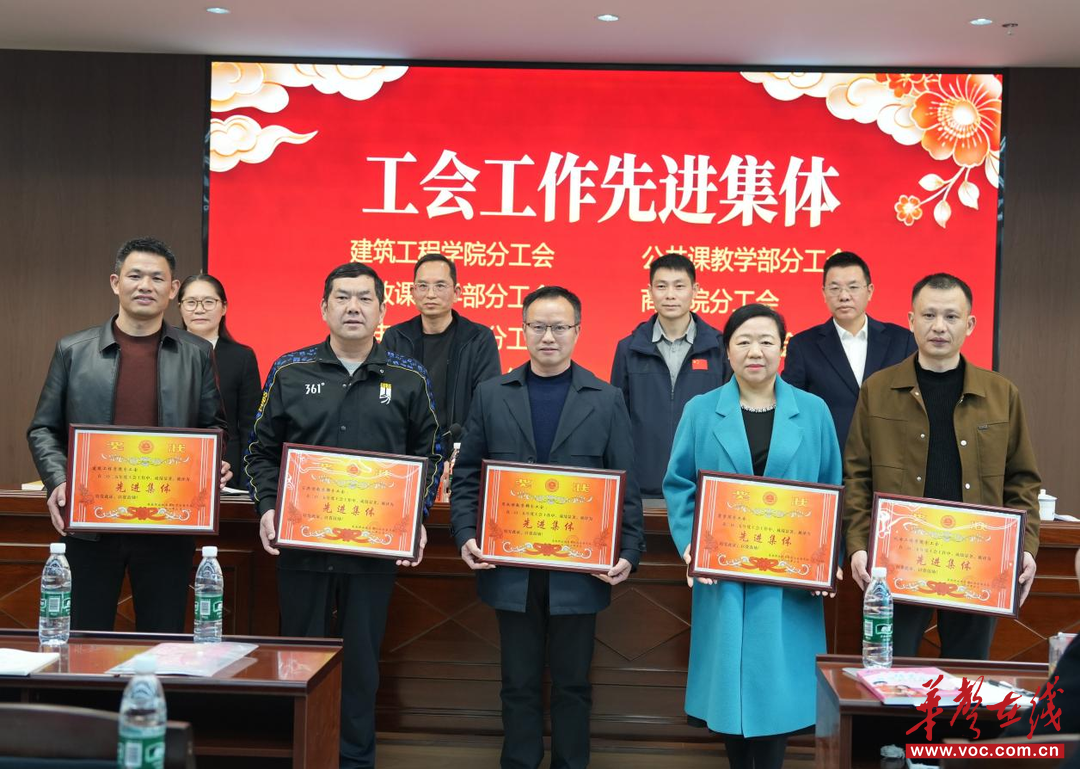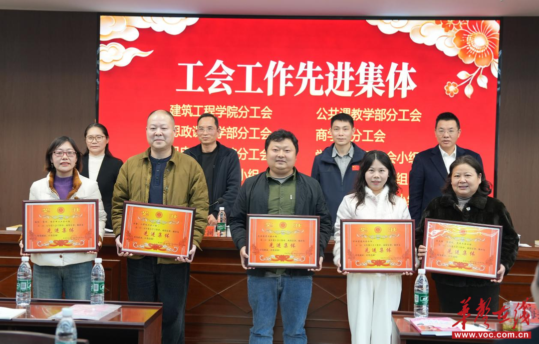 随后,游新娥宣读了2025年度工会工作先进集体和个人的表彰决定。与会校领导为获奖集体和个人代表现场颁奖。向他们表示祝贺,也希望全体女职工以先进为榜样,立足岗位、争先创优,在学校发展中展现更多巾帼担当。