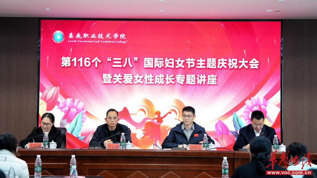 华声在线3月14日讯(通讯员 罗伊岑 赵烽颖)为热烈庆祝第116个“三八”国际妇女节,切实关爱学校女职工成长发展,进一步提升女职工幸福感与归属感,凝聚巾帼力量赋能学校高质量发展,3月12日下午,娄底职业技术学院在综合楼101室举办“三八”国际妇女节主题庆祝大会暨关爱女性成长专题讲座。校党委书记张征澜,校长谭峰亮,副校长游新娥,工会主席周志和出席活动,全体工会干部及女职工代表参加本次会议。会议由周志和主持。