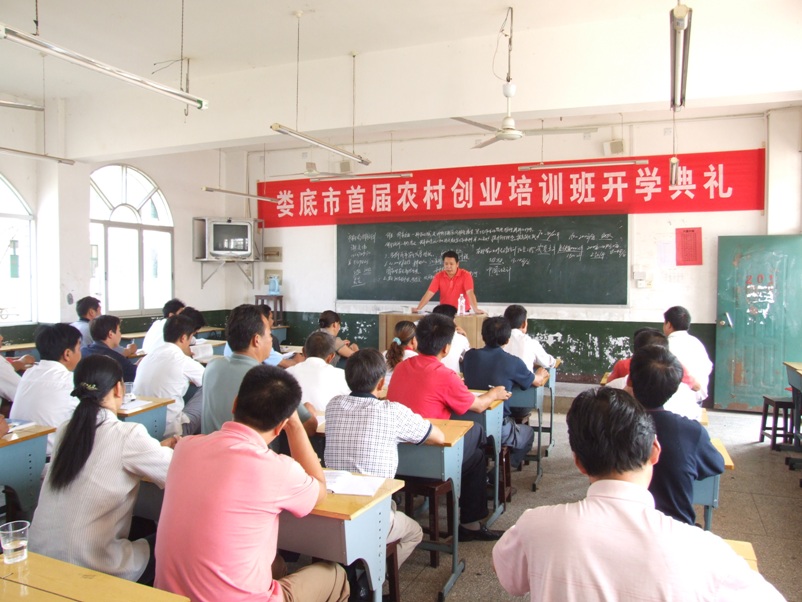 本期培训班共有学员35名,来自娄星区的35个村,大多数为村干部和种植、养殖大户。本班集中培训时间1个月、跟踪指导3年,开设有创业理念、财务管理、市场营销、信息技术、畜禽饲养技术、畜禽疾病防治技术、果树、蔬菜、生态农业、园林花卉苗木、农业政策法规、地方农业与创业等十多门课程,采取集中培训与市场调查、经验介绍、创业实地考察、创业实践等相结合的形式进行培训。学员通过培训和实践可以掌握农村创业的基本知识、基本技能和基本方法,为回乡创业、致富乡亲打下了坚实的基础。