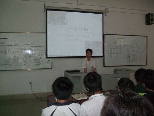 5月6日,湖南广安生物技术有限公司动保公司副总经理易明启先生、高级兽医师向卫红先生来我院农林工程系招纳人才。农林工程系畜牧兽医专业全体学生在第一教学楼302教室参加了招聘说明会。会上,易明启先生介绍了湖南广安生物技术有限公司的基本情况与发展蓝图,分析了技术型营销人才的需求现状,对广安人才晋升机制、技术型营销人才培训计划做了详细的说明,并以自身经历告诫广大同学要培养吃苦耐劳、胆大心细、与人沟通、再学习、收集整理资料、团结协作六大能力,结合广安公司六名年青人在公司发展成才的个性案例教育同学们,进入社会后一定要树立速度加服务的理念。向卫红先生向同学们展示了自己在临床工作中积累的病理图片。两位负责人精彩的说明激发了兽医专业学子的强烈兴趣。农林工程系学工主任罗莉萍要求广大同学要向年青的易明启总经理学习。会后,农林工程系负责人与湖南广安生物技术有限公司动保公司易明启、向卫红等就建立校企合作关系进行了洽谈。