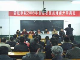 为了切实提高基层农技员业务素质和技能水平,更新观念、提升理念、增强服务能力,真正让基层农技员在现代农业建设进程中发挥应有的作用,按照《湖南省2009年基层农技推广体系改革与建设示范县基层农技人员培训实施方案》的通知精神,湖南省现代农业技术培训基地---娄底职业技术学院于2009年12月11日至12月17日隆重举办了首届基层农技员培训班。涟源市市委常委副市长邱化蛟、娄底市农业局、涟源市农业局、涟源市财政局等相关领导,学院副院长周意坚、农林工程系主任李九如、任课教师和全体学员出席了隆重的开学典礼,典礼由继续教育部主任朱存斋主持。