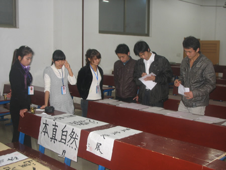 4月19日19点,为丰富学生的课余生活,促进书法绘画爱好者的交流,农林系第二届书法绘画比赛在主教楼102隆重举行。学工主任易瑜,辅导员康和英、李向勇,学生会干部和40多名书法绘画爱好者参加了本次比赛。团总支副书记王义青,宣传部雷萍,学习部杨白霞,书法协会会长严发喜、理事长欧旭担任本次比赛评委。 经过两小时的现场“笔”武,由朱国华、李恋、李永坤分别获得了绘画、硬笔书法、软笔书法一等奖,获奖作品得到大家的一致好评。 本次比赛为书法绘画爱好者提供了一个交流平台,对宏扬和继承中国的传统书法艺术,促进传统书法的传播和渗透有一定的推动作用。(雷萍 易瑜) 附获奖名单: 软笔: 一等奖:朱国华 二等奖:何荣芳 三等奖:翁海波、龙双鹏 硬笔: 一等奖:李永坤 二等奖:李业信 三等奖:袁超胜 绘画: 一等奖:李恋 二等奖:刘平华