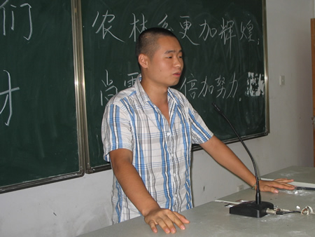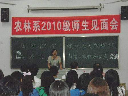 9月11日,农林工程系在主教学楼114隆重召开2010级新生见面会,系主任李九如、学工主任易瑜、园林教研室主任曾玉华、畜牧教研室主任刘小明、辅导员王琦等领导及园林、畜牧专业骨干教师,老生代表出席,会议由学工主任易瑜主持。 会上,农林工程系领导、辅导员以及专业学科带头人与入学新生见面。易瑜首先对全体新生实现大学梦想表示衷心的祝贺,并对他们的到来表示热烈的欢迎。接着,刘平华代表全体老生真诚的欢迎新生的到来表示,谈到了在学院学习生活体会。之后,针对农林系所具有的专业特色,李九如对新生作了简要介绍并提出要求,希望他们能够为即将开始的大学生活做好充分准备,尽快融入到大学的学习氛围当中。 此次大会使新生们更加深入的了解了农林工程系,增加了对学院的归属感和荣誉感。(何甜甜 李小玉 唐萌 易瑜) ![]() 学工主任易瑜主持 ![]() 老生代表刘平华发言 ![]() 系主任李九如发言 ![]() 会场 | |