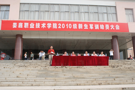 9月11日,农林系2010级新生在文化广场参加了娄底职业技术学院2010级新生军训动员大会,正式开启了他们的大学征程。 上午8:00,农林系新生以昂扬的风貌和整齐的队形出现在文化广场,军训动员大会在国歌声中拉开帷幕,8时30分,农林系新生面向冉冉升起的红旗,他们青春的梦想从这里乘风起航。 新生们认真聆听了陈立楚书记在典礼上的讲话,谨记了陈书记对于新生们的殷切希望,他们决心成为德才兼备的栋梁之才,为祖国的建设贡献自己的青春热血!(何甜甜 李小玉 易瑜)