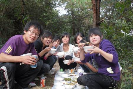 11月5日暖暖的阳光洒满大地,是野炊的好天气,09园林班的同学们兴高采烈的向珠山公园出发了。 到达目的地后同学们一起动手开始准备自己的美味菜肴,虽然都说我们90后比较娇惯但是看同学们切菜、炒菜的样子还是有模有样的。之后大家一起分享丰盛的晚餐。6点是最让人兴奋的篝火晚会。大家手拉手围成一个圈,一起跳一起唱,歌声在树林里回荡,火光映着每一张笑脸,周围的一切都是快乐的。 天色晚了,将这份快乐的记忆打包放在脑海里珍藏。大家唱着《明天会更好》回校了。加油!09园林班的同学们,我们的明天会更好! (李小玉) ![]() 精心准备 ![]() 丰盛的晚餐 ![]() 篝火晚会 | |