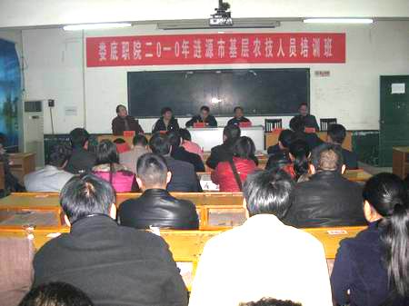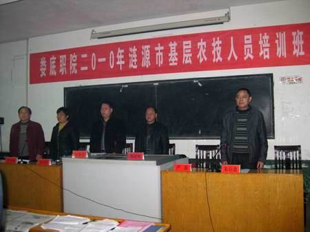 为了切实提高基层农技员业务素质和技能水平,更新观念、提升理念、增强服务能力,真正让基层农技员在现代农业建设进程中发挥应有的作用,按照《湖南省2010年基层农技推广体系改革与建设示范县基层农技人员培训实施方案》的通知精神,11月26日上午,由我院承办的涟源市基层农技班在涟源市党校开班。副院长周意坚、农林工程系主任李九如、继续教育部主任朱存斋、娄底市农业局科教科谢光伟科长、涟源市农业局局长严雄,副局长张沙玲、颜罗生等出席,培训班全体学员参加了仪式。仪式由朱存斋主持。