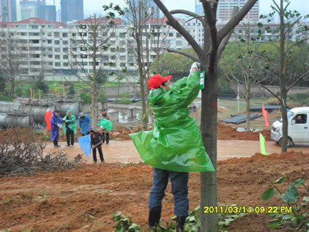 为使本次活动顺利开展,活动前天(3月14日下午),易瑜、王琦、园林专业教师周永胜带领绿色行动队员们到娄底市园林处参加工作布置会议,会上行动队员们分成了宣传引导组、现场挂牌组、树木栽植组,明确了工作职责。会后大家来到珠山公园熟悉活动现场。