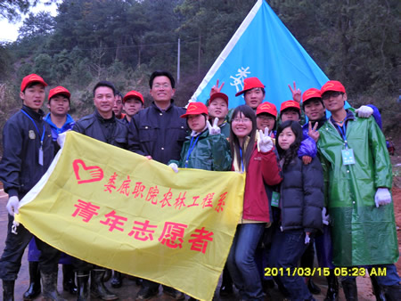 3月15日,农林系学工主任易瑜、团总支部书记王琦带队的青年志愿者绿色行动队给力在珠山公园举行的娄底市“爱我娄底•绿化家园”树木捐植首场现场认捐活动。