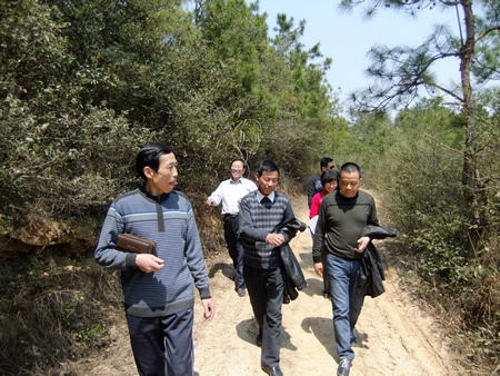 一行人考察了我院畜牧兽医专业校外实训基地大埠桥办事处小山冲种养殖基地和“院村合作”单位大埠桥办事处中阳村,随后同有关部门的负责同志就土地租赁、地下水资源、电力供应、投资政策等进行了友好交谈。刘博清认为备选地块交通便捷、地形地貌独特、自然资源丰富,基本符合兴建万头猪场的要求,并对其中一个地块产生兴趣。刘博清表示:回去后立即向总部汇报,尽快反馈结果。