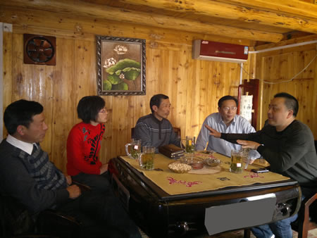 基地经理周永和介绍情况(左一:刘博清,左二:曾国基,左三:周永和)