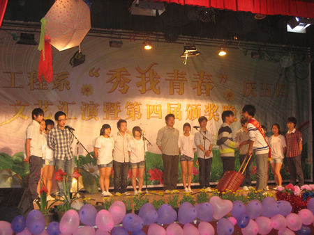辛勤的努力总会有丰厚的回报。在文艺表演的过程中,还穿插了三次颁奖仪式,给过去的一年中,获得国家励志奖学金、院级三好学生、优秀学生干部、十佳文明标兵、以及在系部组织的“阳光宿舍patty”大赛、植物识别大赛、夜间定向越野比赛等一系列活动中获奖的同学颁发了荣誉证书和奖金。颁奖仪式上,获奖者难掩心中激动的神采,一本本荣誉证书映照着他们自豪的脸庞。