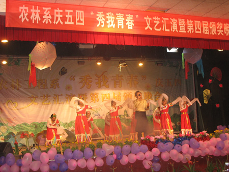 5月4日晚,农林工程系庆五四“秀我青春”文艺汇演暨第四届颁奖晚会在南苑学生活动中心举行。晚会邀请到了副院长刘自斌、院工会主席曾国基、院团委书记欧芳,农林工程系主任刘梅秋、教学主任禹华芳、学工主任易瑜及全体师生观看了本场晚会。