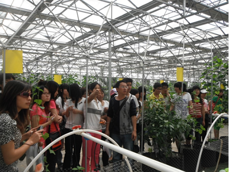 值得一提的是,该大棚内的花卉都是置于水体、花架、假山在内的园林景观之中,无形之中增添了意境,把大家对本专业的认识提到一个高层次上。再者,早已打出品牌的无土栽培、有机瓜果蔬菜更是让大家惊叹,这种高级的栽培技法、全现代化的管理方式生产出的健康瓜果蔬菜又是本专业就业的一大亮点。(文/何甜甜 组稿/易瑜)