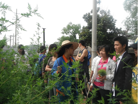 25日上午,全班同学在邓工农老师的带领下乘车前往涟钢双菱苗木基地进行参观实践。具体的实习内容包括对热带花卉进行识别,对温室花卉进行品种统计。一方面对棚内的室内花卉、木本花卉进行了认识和巩固,另一方面也跟师傅学习怎样把菊花嫁接到青蒿上。最后还跟师傅一起对基地内的地肤(俗称扫把草)、万年青进行换盆,对菊花进行摘心,确保它们生长良好。