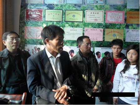 气温随着太阳升起渐高,初冬丝丝寒意被一扫而光。车愈往前行,乡土气息愈浓,窗外美丽的风景让大家赏心悦目。9:30到达目的地第一站:桃子金银花信用合作社办公楼。一下车首先感受到的就是合作社理事长梁赵明的浓浓热情,他亲自将大家下车点接到接待室。金银花自古被誉为清热解毒的良药,办公室服务员热情的给大家泡了金银花茶,独特茶香弥漫开来。就着宜人茶香,梁总带着大家参观合作社的办公室。办公室大厅里漂亮的宣传海报吸引了大家的眼球。展示墙上,金银花种植的技术、合作社成立历史图片、合作社获得各种奖项让大家目不暇接。梁总给大家详细的讲解了金银花合作社的成长历程和发展前景,大家都认真的听取着前辈的教诲,体会着这个企业的的成长。其间,涟源市电视台记者跟随采访全过程。