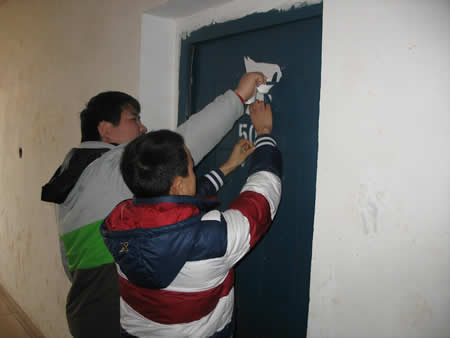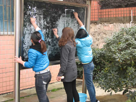 3月20日,周吉华、曾娜带领“绿色行动队”学生会男、女生部小分队针对六栋、二栋宿舍 “牛皮癣”进行了大清理。队员们拿着刷子、盆、钢尺等物品开始了清理活动,先用清水喷洒,然后用刷子认认真真的刷干净,最后用钢尺、小刀将残留的纸屑碎末彻底刮干净。经过两个小时的清理,恼人的“牛皮癣”终于被清理干净,给宿舍楼“洗了把脸”。