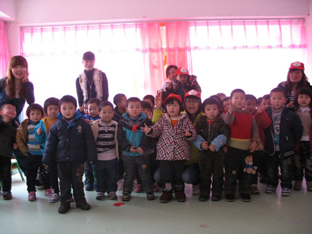 志愿者们受到了谢园长、老师和小朋友们的热烈欢迎。志愿者们分散到各个班级里,教小班的小朋友画气象的标志;通过图片让中班的小朋友学习灾害性天气的知识,和大班的小朋友玩“小小气象预报员”的游戏。孩子们开心的学着,兴奋地玩着,银铃般的笑声充满了整个幼儿园。