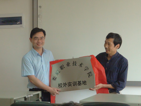 在热烈的掌声中,佳和农牧有限公司肖经理向我院授予了“佳和农牧有限公司人才供应基地”的牌匾,曾国基主席向佳和农牧有限公司授予了“娄底职业技术学院校外实训基地”的牌匾。