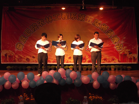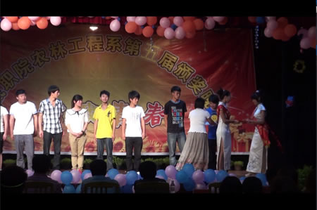 5月16日晚,农林工程系庆五四“秀我青春”文艺汇演暨第五届颁奖晚会在南苑学生活动中心举行。晚会邀请到了副院长刘自斌、院工会主席曾国基、学工处处长张一军、院团委书记欧芳,农林工程系主任刘梅秋、学工主任易瑜、园林专业教研室主任曾玉华、团总支书记王琦及全体师生观看了本场晚会。