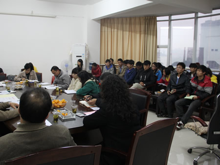 我系主任刘梅秋首先代表农林系对参会的嘉宾加入农林系学管团队表示了热烈欢迎,同时向嘉宾们介绍了我系学生基本情况。然后,我系学工主任易瑜对我系学生工作进行详细汇报和总结,谈到了我们取得的成绩与工作经验,重点就我系开展的学生工作与党建、团建、教学工作有机结合的特色工作进行了具体的介绍。接着,我系辅导员朱静姝、王琦、曾凤姣分别针对所带班级的基本情况、工作特色、存在问题进行了具体汇报。