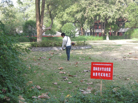 根据湖南省教育厅关于2012年湖南省高职院校学生专业技能抽查考试有关事项的通知(湘教通湘教办通〔2012〕206号文件精神, 2012年11月3-5日,教育厅对湖南省高等职业院校10级园林技术专业在籍学生开展了专业技能抽测。技能抽测的内容主要包括三个模块的内容,即园林规划设计模块、园林植物模块和园林工程技术模块,同时对其在实际操作过程中所表现出来的职业素养进行综合评价。
