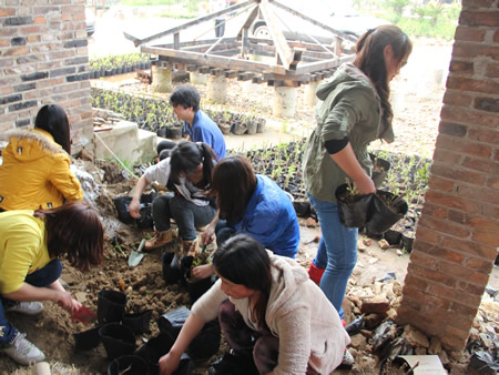烟花三月,春暖大地。雷锋的精神又将在我们的身上延续。下午,志愿者们在队长的带领下,井然有序的行动,相互配合,除去杂草,给植物分类,为树苗上盆,将上盆后的树苗摆放整齐。最后,为上好盆的树苗浇透水。整个过程都是在闷热的天气中进行着,但是大家大汗淋漓地坚持了下来。