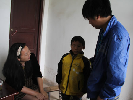 4月19日,我系“绿色行动队”骨干11畜牧班姜辉、11园林工程班龙群香和学工主任易瑜一行三人,在世瑞村书记谭建成、妇女主任尹付吾的陪同下,前往扶洲小学看望“扶贫助学”对象张澄凰小朋友。