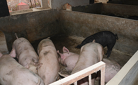 聂新平首先承包300多亩荒山建设苗木基地,种植金银花等植株。他还投入500万建设标准化猪场、鱼塘。聂新平介绍说,他的猪场与湘村黑猪等湖南省龙头企业都有合作,引进优良品种,一体化挂牌养殖。他的猪场建有标准化的母猪产房、猪崽保育房、出栏猪房,现育有3100头存栏猪。猪场旁边,还建有鸡场与鹅场,计养有500只鸡、200只鹅。