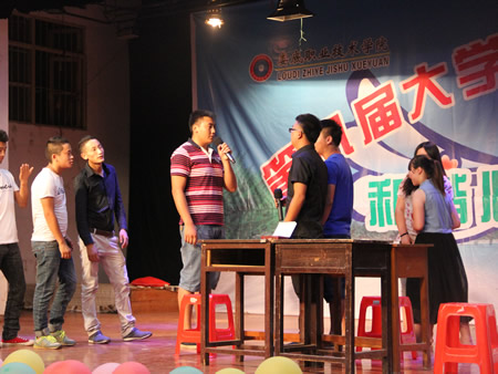 我系选送的参赛剧目是由同学们自编、自导、自演的作品《同圆中国梦,共筑娄职魂》,作品内容源自大学生活,又高于大学生活,讲的是我系去年西藏同学激增,汉族同学从“多数民族”到“少数民族”转变的不适应;因民族文化差异,不同民族同学之间引发的一系列误会、矛盾,经过磨合、了解消除误会,解决问题之后,为共有的民族复兴、国家富强“中国梦”;建设特色娄职、品牌娄职的“娄职梦”同奋进的事。