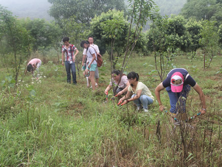 队员们在曾老师和肖总的指导下,使用枝剪、除草机对果桑周边进行除草,对幼龄树进行树型修剪。经过队员们艰苦奋战,工作成果显著。相机定格了大伙晒黑的脸上扬起的灿烂笑容。(易非 龙群香 耿岳)