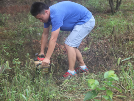 上午,一行人在月塘村山地养鸡场创办人我系10级畜牧班曾娜学姐的热情欢迎下参观了山地养鸡,曾娜学姐介绍:目前养鸡场大约现有200平米,养了1000只良种三黄鸡。队员们和指导老师们在参观了由曾娜亲自动手搭建并架设电线、水管的鸡舍后,由衷地竖起了大拇指。指导老师针对山地养鸡应注意的一些问题及其在养殖过程中遇到的问题提出了有针对性的建议和意见。