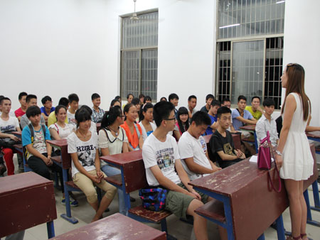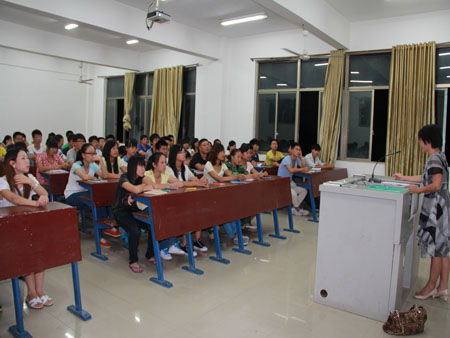 首先刘梅秋为新生们介绍了我校的发展历史,校训的由来等。紧接谈到我系的发展情况,并鼓励新生们要努力学习。