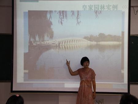 园林专业老师汤艳利用PPT对大家进行讲解,讲到了园林专业是针对工作岗位要求训练专业技能,培养高技能技术型人才。阐述了专业情况的同时也为大家展示了很多好的园林作品,让大家更进一步的了解所学专业。