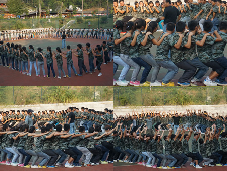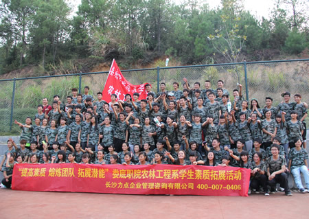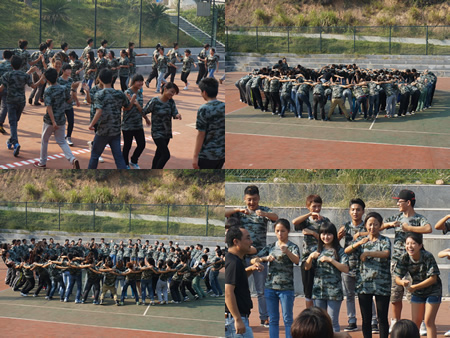 早晨7:30,114位同学从学校出发,到达目的地――白鹭山庄素质拓展培训基地。8点半,在4位教练的陪护与指导下,素质拓展训练正式开始,教练将同学们分为8个小分队,分别推选出了各公司董事长,推出公司名称,画出公司LOGO,想出公司口号。此次训练共包括六个项目,分别是“桃花朵朵开”、“变形虫”、“鼓动人心”、“毕业线”、“团队有我更精彩”、“相同不相同”。各项活动从团队的角度出发,充分调动起大家积极性的同时,还时刻强调集体意识,使大家在愉快的游戏当中认识和学习到团队的重要性和必要性。