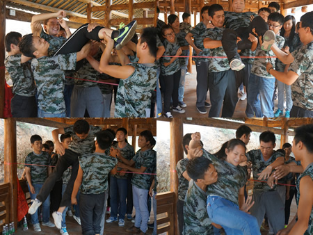 拓展训练虽然是短暂的,但给每位同学都留下了深刻的印象,不仅加深了成员之间的了解、信任和交流,还实现了团队协作、合理统筹、超越自我!每一位参加的成员都在生理和心理上突破了自我。相信大家在今后的学习、生活及以后的工作中都将不断地超越自我!(易非 耿岳 邱鹏 姜辉 赵光辉)